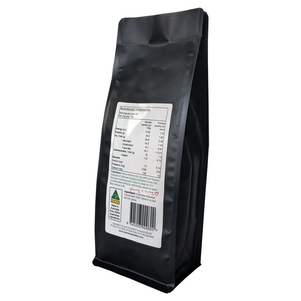 Ingredients: Australian Roasted Cocoa Bean Shell. Made in Australia from 100% Australian ingredients.