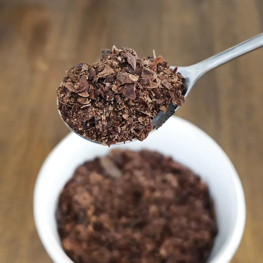 Roasted cocoa bean shell is naturally high in fibre, low in fat, gluten free and cholesterol free.