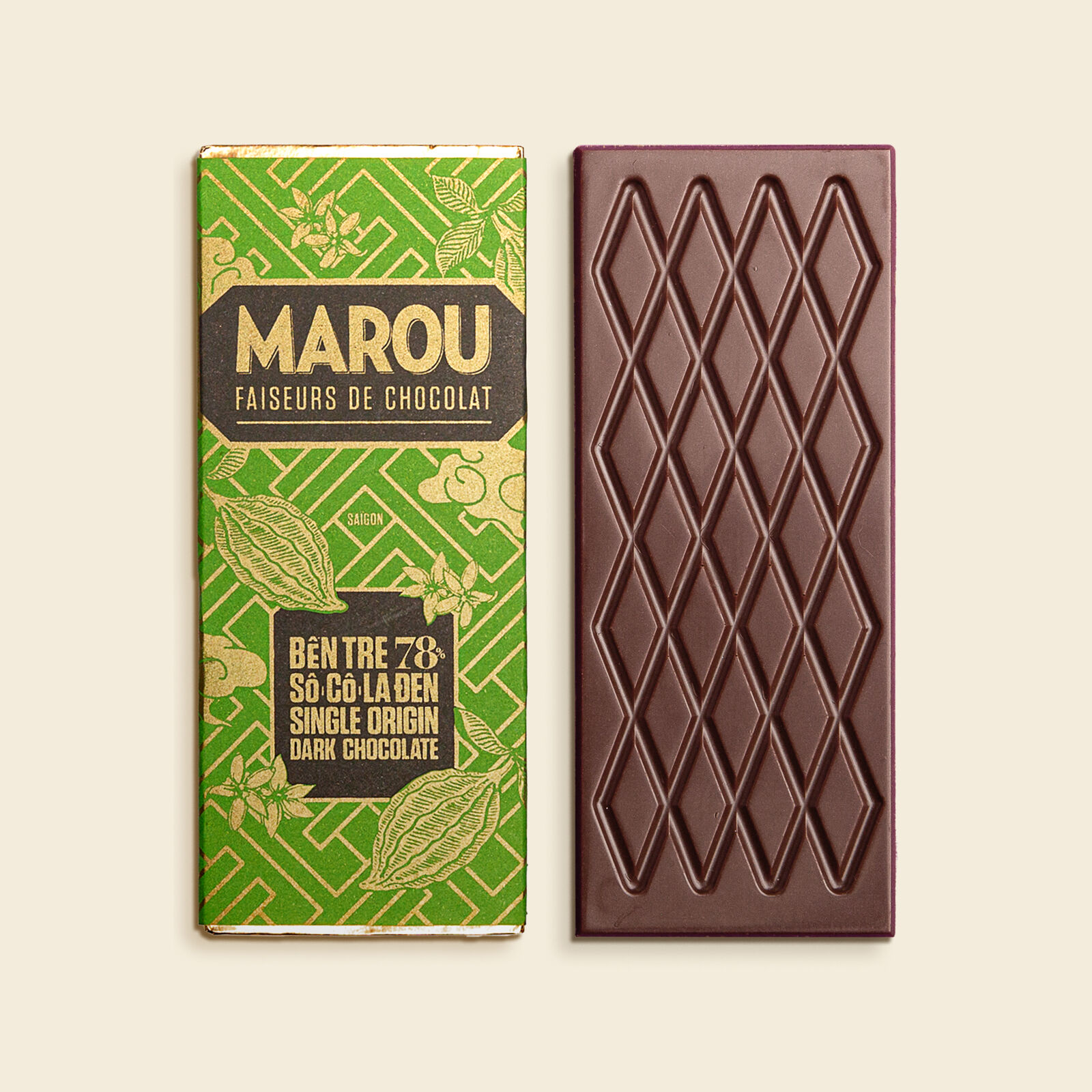 An intense yet balanced chocolate, from Ben Tre province in the Mekong Delta, where cacao trees are planted among the coconut groves.