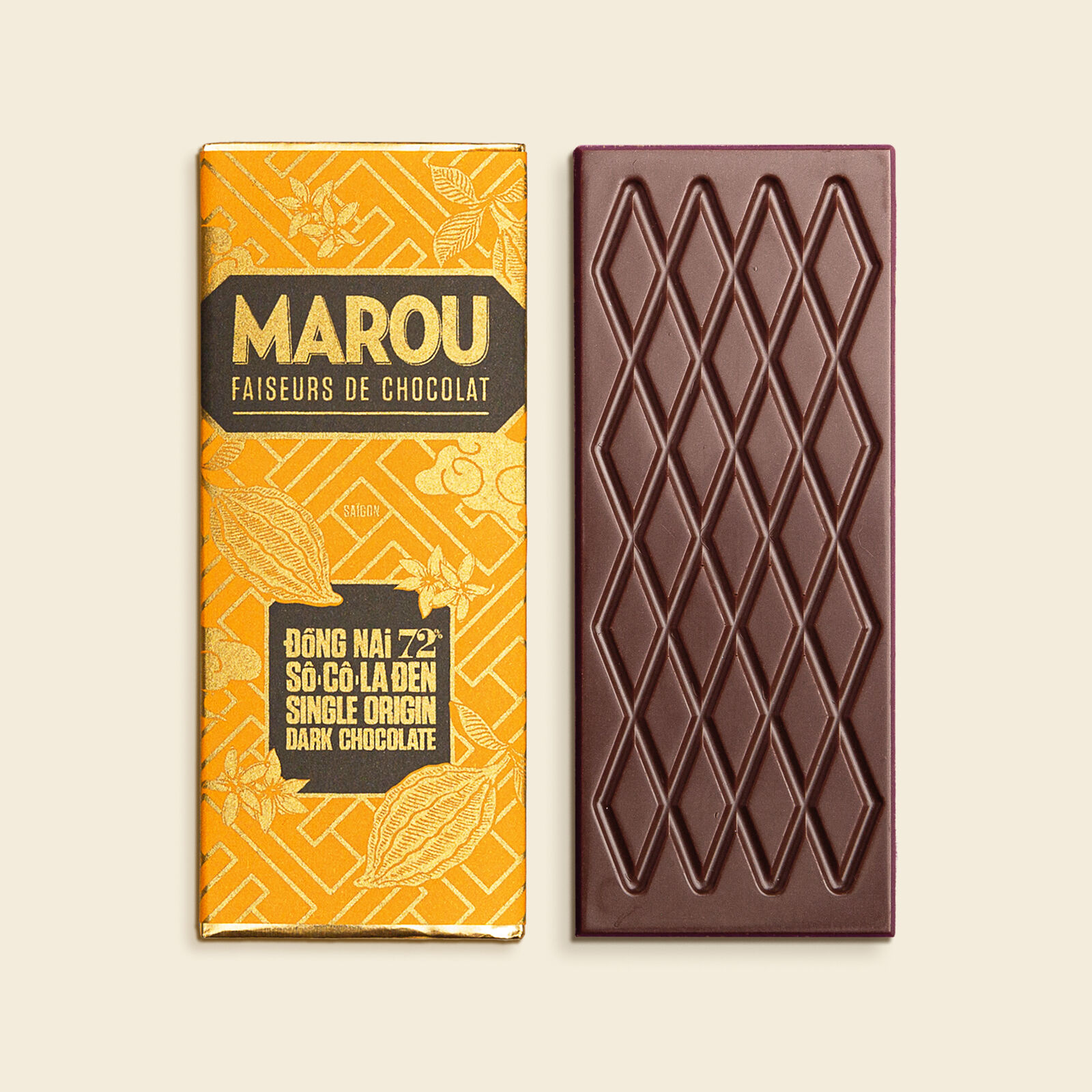 Our own fermentation station near Cat Tien National Park in the Upper Dong Nai region produces, from locally grown pods, the cacao beans used to make this finely balanced dark chocolate with hints of spice.